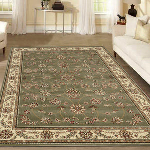 This timeless oriental scroll design is a traditional pattern updated with tasteful modern touches to suit any space. The dominant soft green base is bordered by an intricate floral border to complete this traditional design machine made in Italy. Made of heat-set polypropylene, this rug provides a soft, non-shedding, durable, and easy to clean accent to the decor in your entryway, hallway, bedroom, playroom, dining room, or living room. A wide array of sizes and shapes, including rectangles, rounds, and runners, allows this machine made rug collection to fit in any space comfortably.
